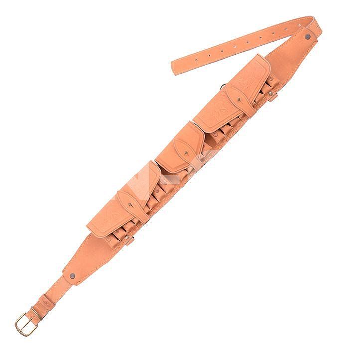 Изготовлен в традиционной форме из натуральной кожи. Патронташ надежно держит 20 патронов в лузах. Позволяет загрузить патроны снаряженные в гильзы длиной от 70мм. до 89мм. Оснащен клапанами для защиты патронов от не погоды. В производстве используется итальянская фурнитура, которая практически не дает бликов. Раскрой производится на специальном оборудовании, что гарантирует высокое качество изделий. Изделие украшено миниатюрами охотничей тематики, нанесенным методом горячего тиснения.
